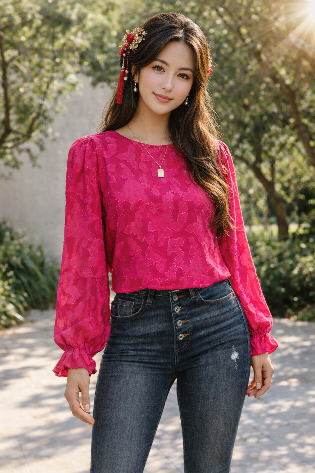 This delicate floral textured design makes this blouse perfect for any occasions and brings a classy and sexy look whether matching with jeans, skirt, sandals, or high heel.